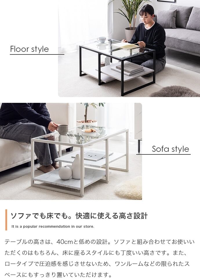 【KAGUKAU】ガラス天板センターテーブル 幅80cm