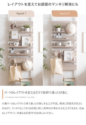 【付属パーツ】棚板(幅60):2枚 、棚板(幅30):2枚 、帽子用フック:2個、S字フック:8個