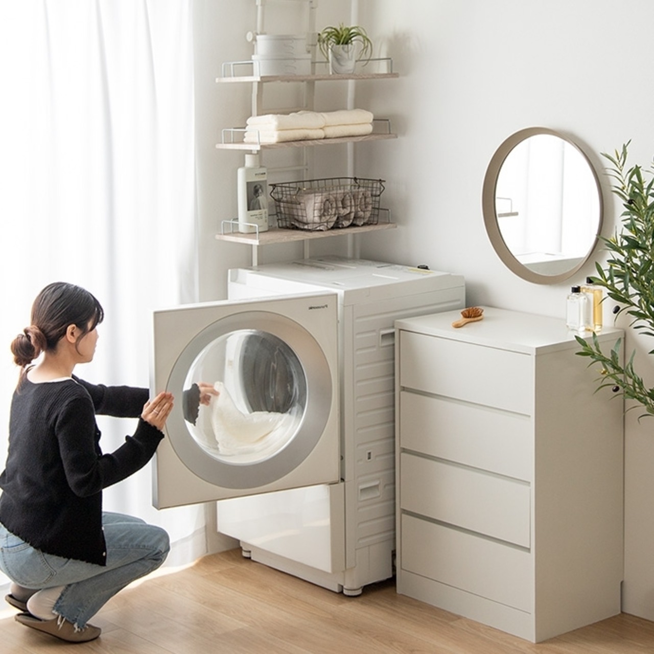 【KAGUKAU】突っ張りランドリーラック 60cm 壁に穴をあけることなく、簡単に壁面収納ができる