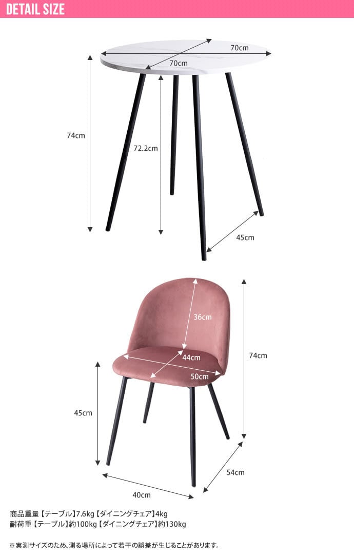 サイズ 【大理石柄ダイニングテーブル】幅70cm×奥行70cm×高さ74cm