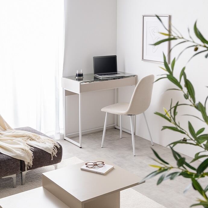 ガラス天板の下に引き出しを配置することで、お気に入りのコスメやアクセサリーがディスプレイできる、まるでショーケースのような美しいガラスデスク。いつも使うものを美しく飾りながら収納でき、デスク自体がお部屋のアクセントに。毎日の身支度やデスクワークが、お気に入りに囲まれた特別な時間に変わります。