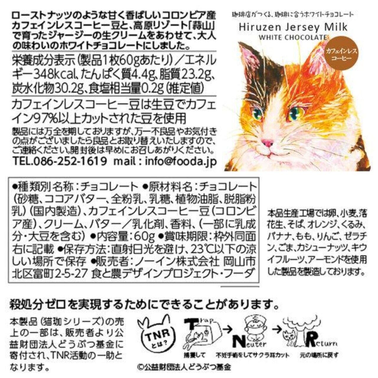 ★【猫珈ホワイトチョコレート コーヒービーンズ】板チョコ 60g